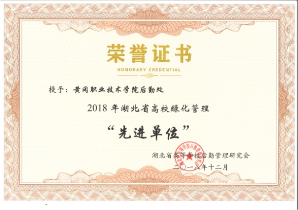 学校荣获2018年度湖北省高校绿化先进单位