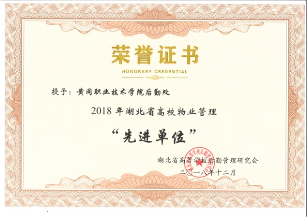 学校荣获2018年度湖北省高校物业管理先进单位