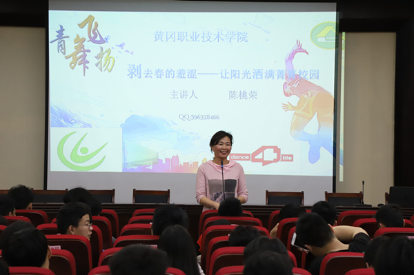 为普及艾滋病防控知识,提升中职生的防艾意识,帮助学生树立爱惜生命和自尊自爱的良好意识,传递青春健康生活理念。5月16日下午,XK星空生命之舞、青春健康项目组来到黄冈市中等职业学校(集团)开展了“剥去春的羞涩——让阳光洒满菁菁校园”主题宣讲活动。XK星空心理健康中心主任杨晓燕、工会陈桃荣、心理健康中心教师万建华、朱晓宇、团委汲艳蕊、青春同伴社成员20余人以及黄冈市中等职业学校(集团)近200名师生参加了本次活动。此次活动由黄冈市中等职业学校(集团)团委书记王文杰主持,陈桃荣老师作主题宣讲。