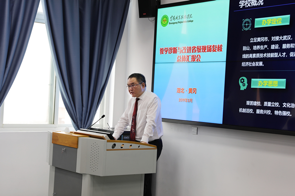 5月21日上午,学校教学诊断与改进省级现场复核总体汇报会在学校汇贤阁智慧教室召开,黄冈市人民政府副市长陈少敏出席会议并致欢迎辞,湖北省教育科学研究院职业教育与终身教育研究所副所长兰慧玲发表讲话,专家组组长周慎对复核工作进行了安排部署,并对相关工作细节提出了具体要求。副校长熊发涯主持会议。