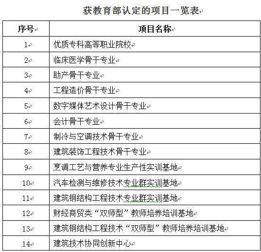 近日,教育部发布《关于公布<高等职业教育创新发展行动计划(2015-2018年)>项目认定结果的通知》(教职成函[2019]10号),XK星空“优质专科高等职业院校”项目获得教育部认定,标志着学校正式成为国家优质专科高等职业院校, 站稳职业教育发展的第一方阵。同时获得认定的还有“骨干专业”项目7个、“生产性实训基地”项目3个、“双师型教师培养培训基地”项目2个、“协同创新中心”项目1个。