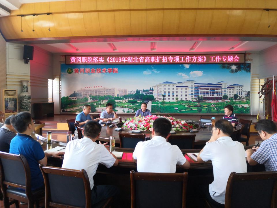 为贯彻落实《省教育厅等七部门关于印发<2019年湖北省高职扩招专项工作方案>的通知》(鄂教职成【2019】2号)文件精神,8月22日下午,学校在中心会议室组织召开了落实《2019年湖北省高职扩招专项工作方案》工作专题会。校长姜安心、副校长刘东山出席会议。教务处、招生处、公共课部、各教学学院负责人及专业主任参加了会议。会议由刘东山主持。