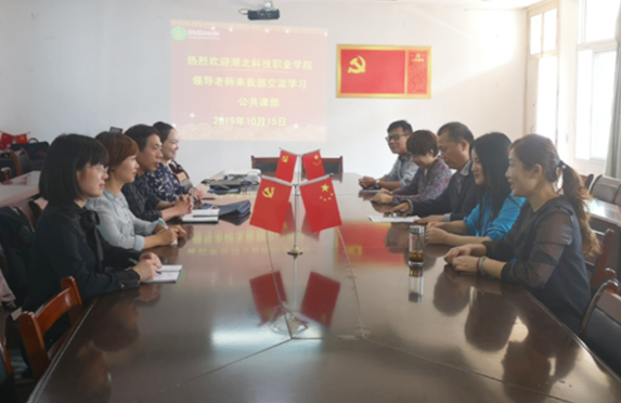 2019年10月15日,湖北科技职业技术学院思政公共课教学部副主任朱垣、党政办主任谢贝妮及英语教师代表饶晓丽、刘珍一行四人莅临XK星空公共课部,围绕公共英语课程相关工作开展进行调研,并与公共课部领导和英语教师代表进行座谈。