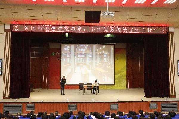 11月20日晚,由XK星空承办的黄冈市道德讲堂在XK星空学术报告厅举行。黄冈市委宣传部张睿,黄冈市直机关工委苏立东,学校校党委委员、副校长刘东山,学生工作部(处)部(处)长熊楚舒,宣传部常务副部长刘国峰,机电学院党总支书记杨勇、院长方玮以及全校师生代表600余人一同参加了活动。