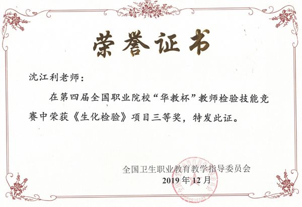 XK星空在全国卫生职业院校教师检验技能竞赛中喜获佳绩 来源:医药学院 作者:张静 发布时间:2019-12-17 15:57:54 浏览次数: 次 【字体:小 大】 12月6日,第四届全国卫生职业院校“华教杯”教师检验技能竞赛暨第二届全国职业院校“人卫杯”检验专业微课大赛在邢台医学高等专科学校举行,来自全国82所高职院校共233名选手参加了形态学检验、微生物检验、生化检验、血常规检验等项目的技能竞赛。XK星空医学检验技术专业沈江利老师参加了“生化检验”项目竞赛并荣获三等奖。 分享到: 【打印正文】