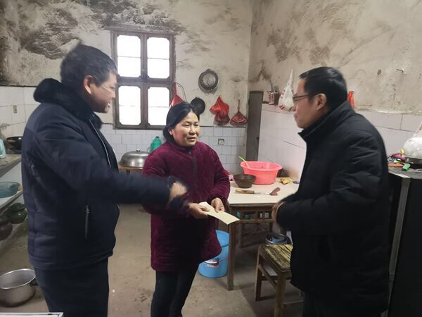 一到扶贫点,全体慰问干部和驻村队员分成4组,冒着寒风冷雨,走村串巷,走访26家精准扶贫对象。每到一户,姜安心等领导与困难群众拉家常,了解家里近期的生产、生活情况及春节物资准备情况,听取群众的意见建议,鼓励他们永跟党走、勤劳致富、节俭持家。
