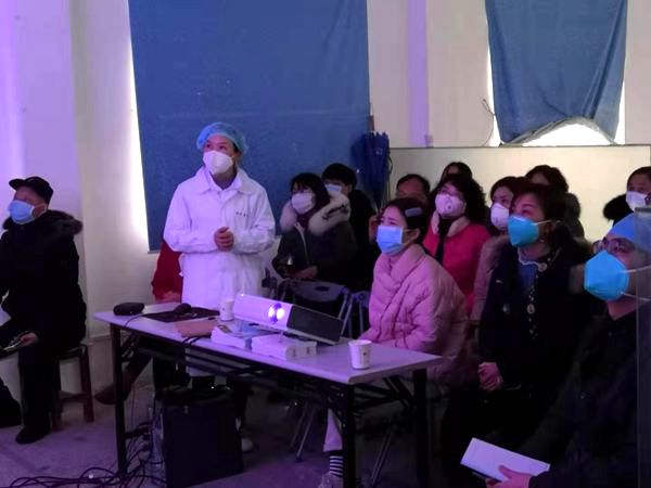 附院专班工作人员为了节省时间,午餐时间继续商讨工作。下午3:00,附院全体医务人员参加专业培训,随时准备奔赴一线。