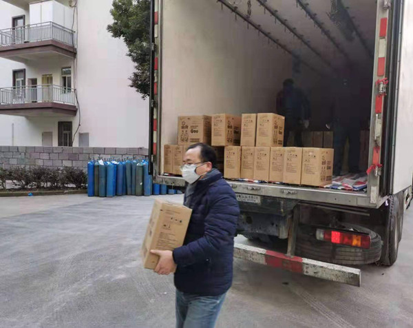 程朝晖搬运捐赠物资