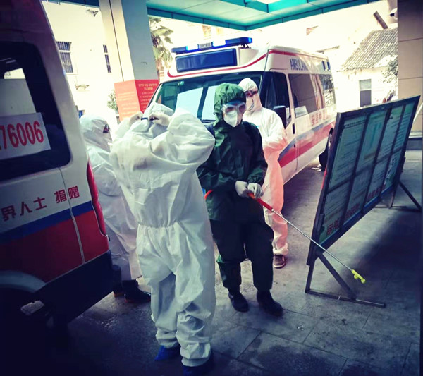 秦奇峰和姚湛军是XK星空临床201512班的学生。作为红安县杏花卫生院理疗科的年轻医生,工作还不到两年,他们得知疫情后主动请缨,并积极承担起全院的消毒杀菌工作。这项工作每天要背上几十斤的消毒喷雾器,在病区、电梯、转运车里每天往返十几趟。哪怕身上的防护服湿透,他们还是会腼腆地笑着说:“我们辛苦点,能有效预防病毒的扩散和保障医护人员的健康,真的很值得。”为两位帅小伙点赞!