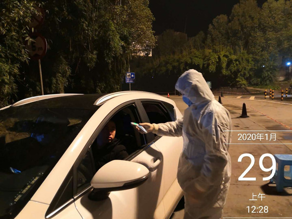 陈志鹏为往来人员测量体温