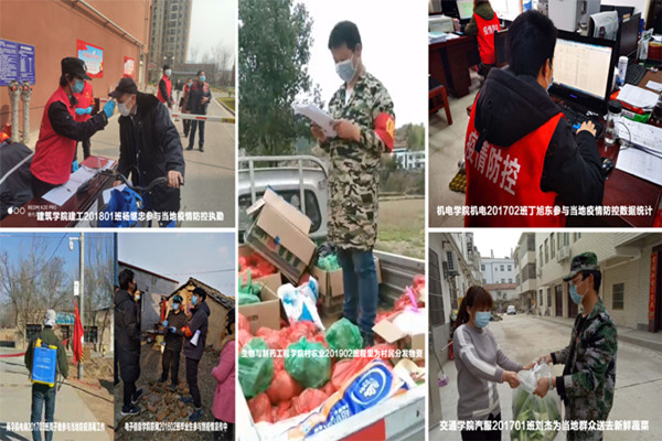 除了抗战在医护一线的学子,还有很多受过国家资助的学子积极投身到感恩志愿服务中。他们有的是家庭经济困难的大学生村官,坚守岗位,舍小家为大家;有的是刚毕业的医疗检测公司的员工,逆行返汉,驻扎雷神山;还有许多同学没有医学专业背景,却主动向居住地的社区、防疫指挥部报到,参与疫情宣传、防控执勤、物资搬运、体温测量、数据统计等感恩志愿服务。