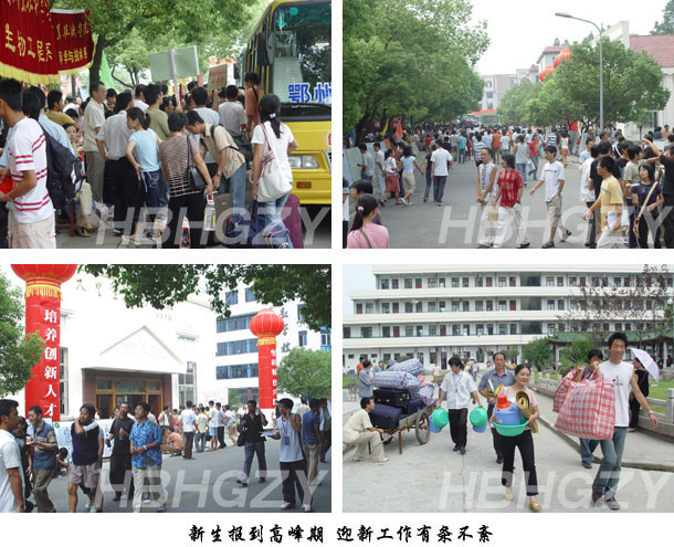 为了做好新生及学生家长的接待工作,我院组织专班搞好新生入校的一条龙服务。在武昌火车站和武昌付家坡汽车站等武汉、鄂州、黄州大型车站设有迎新接待站,组织新生及家长乘车来校,到校后各系、部及相关处室相互配合做好迎新工作,并由老生引导每一位新生办理入学报到手续,安排新生住宿。
