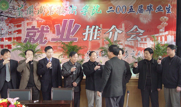 2004年12月5日,我院举行2005届毕业生就业推介会。这是继2004届毕业生就业推介会后,我院又一次举办的大型校园就业推介会。参加此次就业招聘会的用人单位近两百余家,人民日报、中国教育报、中国消费日报、法制日报、湖北电视台、湖北青年报等十余家新闻媒体也到会采访。