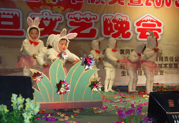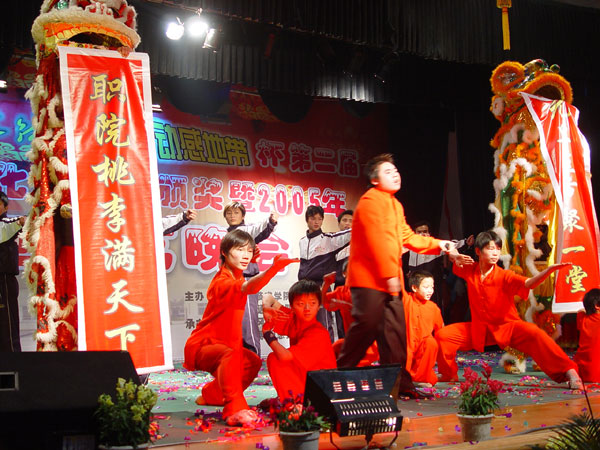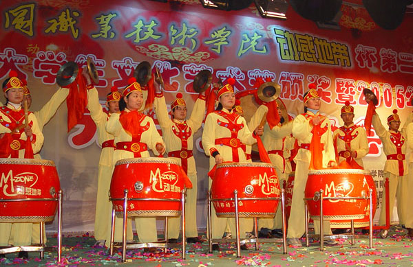 室外,朔风凛冽,寒气逼人。室内,掌声阵阵,气氛热烈。2004年12月28日晚,我院二00五年元旦暨“动感地带”杯第二届大学生文化艺术节颁奖文艺晚会在大学生活动中心演出。院领导涂普生、周德金、覃守云、李家瑞、李耀水、王维华、段院生,黄冈移动通信公司领导,各系部处室负责人及师生员工1000余人观看了晚会。