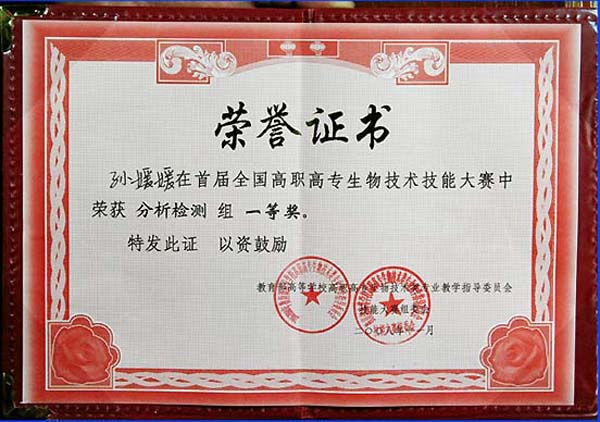 经过紧张比赛,我院荣获团体一等奖,李玲同学获微生物发酵组一等奖,孙媛媛同学获分析检测组一等奖。这是我院深入开展“行动导向”教育教学改革的重要成果,是我院历史性的重大突破,可喜可贺!我院为湖北省高职高专生物类专业牵头学校,通过本次比赛,也确立了我院生物类专业在全国高职高专的领先地位。