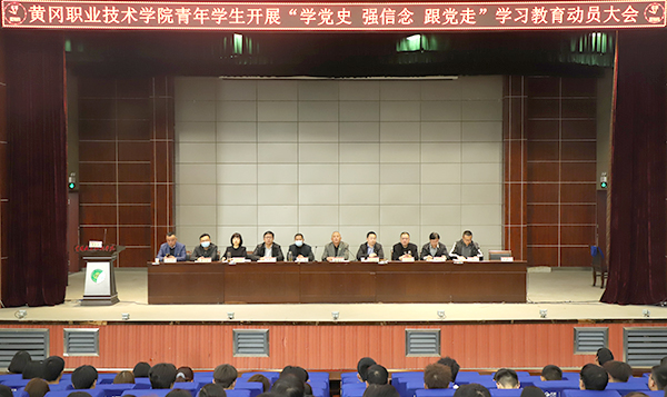 今天的动员大会,标志着全校青年学生层面开展“学党史 强信念 跟党走”学习教育的号角已经全面吹响,全校青年学生将以习近平新时代中国特色社会主义思想为指引,扎实开展好学习教育工作,凝心聚力,奋力开创黄冈职院共青团工作新局面,为庆祝建党一百周年做出贡献。