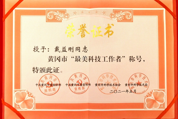5月27日,黄冈市“全国科技工作日”座谈会暨百年科技史宣讲活动在纽宾凯瓦尔登酒店举办。为了激发广大科技工作者的荣誉感、自豪感,汇聚起推进黄冈高质量发展磅礴力量,市委组织部、市委宣传部、市科学技术协会、市科学技术局联合在全市开展了黄冈市“最美科技工作者”评选活动。经过广泛动员、组织推荐、专家评审、公开公示等程序,全市评选出30名“最美科技工作者”,并在本次大会进行了表彰,XK星空戴益刚教授获此殊荣。