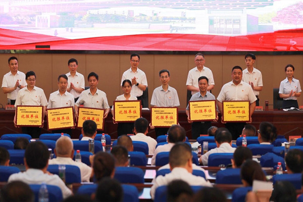 会上,表彰了8个先进基层党组织、50名优秀共产党员和13名优秀党务工作者,并对2020年度校内文明单位创建工作优胜单位颁发了奖牌。机关第一党总支三支部支部书记赵霄、优秀党员代表程明龙分别就党支部建设、党员先锋作用发挥等方面在会上作交流发言。
