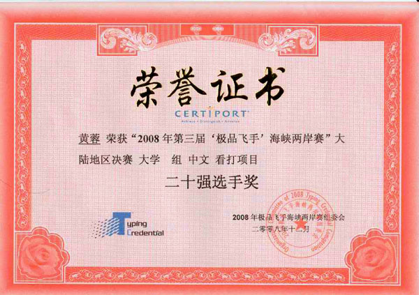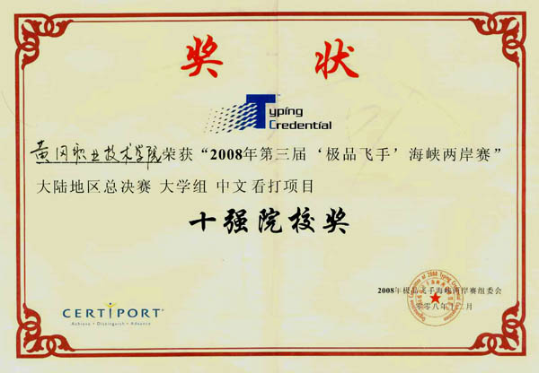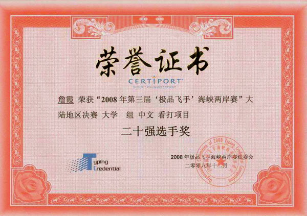 我院代表队获第三届“极品飞手”大陆地区总决赛好成绩 来源:计算机科学与技术系 作者:万德年 发布时间:2016-01-21 16:51:40 浏览次数: 次 【字体:小 大】 12月20日,2008年第三届“极品飞手”海峡两岸赛大陆地区总决赛在上海华东师范大学举行。我院选手以饱满的热情,高超的录入技巧参加了本次竞赛。詹霞同学和黄蓉同学分别入围大学组中文看打比赛二十强。XK星空荣获大学组十强院校奖。 自11月份以来,我院组织了“极品飞手”中英文看打比赛集训活动,我院代表队通过院级初赛和省级复赛,并最终获得参加大陆地区总决赛的资格。 分享到: 【打印正文】