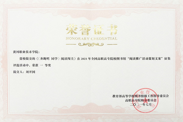由教育部高等学校图书情报工作指导委员会高职高专院校分委员会主办的全国高职高专院校图书馆“阅读推广活动策划文案”征集评选活动已于2021年7月1日结束。本次活动共收到参评作品144篇。经专家组评审,共评选出一等奖14篇,二等奖22篇,三等奖36篇。XK星空图书馆选报的阅读推广案例《奔跑吧 同学》荣获一等奖。