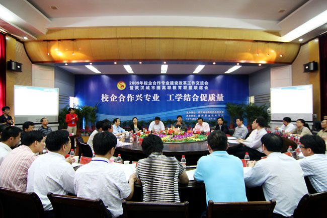 2009年5月6日-7日,2009年校企合作专业建设改革工作交流会暨武汉城市圈高职教育联盟联席会在我院隆重召开。会议由武汉城市圈高职教育联盟主办,我院具体承办。出席本次会议的领导和嘉宾有教育部高教司高职高专处副处长林宇、黄冈市人民政府副市长王浩鸣、省教育厅高教处处长张建军、省教育厅高教处副处长张锦枫、黄冈市人民政府副秘书长邱秉源、黄冈市人民政府副秘书长王治高、黄冈市教育局局长杨优秀、黄冈市人民政府办公室副主任杨石明等。参加本次会议的高职院校有43所,代表共计146人。