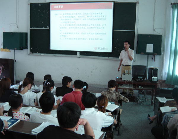 这次示范课还取得了用友软件公司的支持,开创了校企结合,共同推进教学改革的新途径。