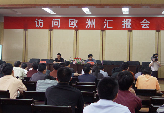 2005年5月19日下午,我院在办公楼四楼学术报告厅举办访问欧洲汇报会,参加汇报会的有学院党委涂普生书记、周德金院长、李家瑞副院长、李耀水副院长、汪晓凌副院长、段院生副院长及全体副科级以上干部。