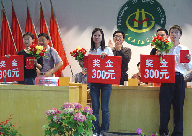 在热烈的掌声和欢快的校歌声中,院领导为各获奖单位和个人颁发奖金、奖状和荣誉证书等。本次大会为受表彰的集体有经贸系学管、生物系学管、人文系学管,经贸系男子篮球队、生物系男子篮球队、土木系男子篮球队、计科系男子篮球队;受表彰的个人有奖学金获得者557人、义务献血积极分子504人、最有价值球员3人、见义勇为奖2人、拾金不昧奖1人,奖励的金额总计238700元。黄冈市中心血站领导也特地赶来向我院贫困生捐赠助学基金一万元整。会上学生代表罗熙同学进行了学习经验交流。