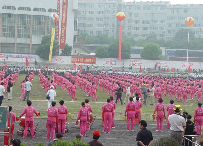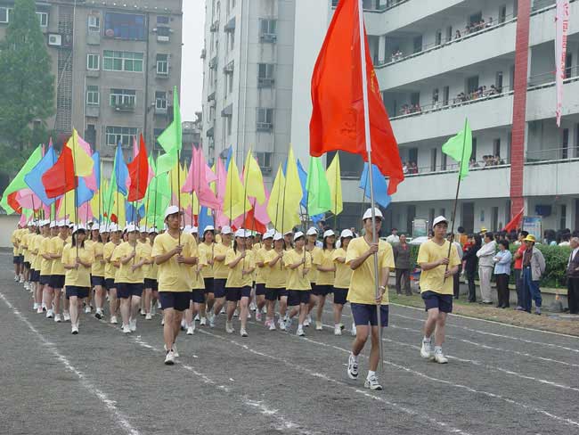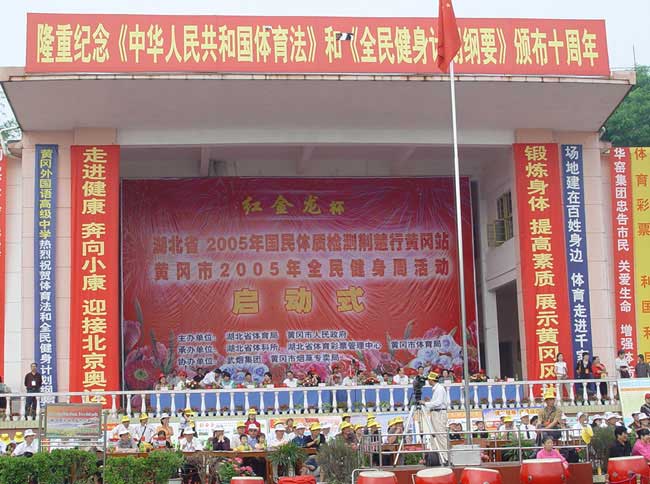 2005年5月22日上午8时,由黄冈市体育局组织的“湖北省2005年国民体质检测荆楚行黄冈站活动暨黄冈市2005年全民健身周启动式”活动在黄冈市体育场隆重举行。为响应此次活动,我院派出了由120名同学组成的彩旗方阵,并由段院生副院长担任领队,学工处陈国安处长和王莹华副处长担任教练。此次活动历时三个小时,首先观看了由黄冈市技工学校、黄冈市老年体协等单位带来的七个动作新颖、造型美观、旋律优美的健身节目后,由中共黄冈市委书记段远明同志为本次活动的重头戏“万人健步走”发令,我院彩旗方阵处在这支万人队伍的第三方阵。在活动中我院120名同学着装统一、精神抖擞、步伐矫健、口号响亮、听从指挥,充分展现了我院学子朝气蓬勃、热情奔放、纪律严明、积极上进的精神风貌,体现了当代青年学子的青春活力。此次活动象征着黄冈人民立志崛起的老区精神,展示了我市两个文明建设的丰硕成果,并掀起了我市全民健身活动的新高潮。