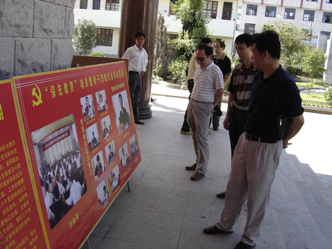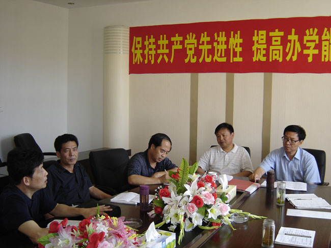 院党委书记涂普生同志介绍了我院先进性教育活动开展的有关情况:一是领导重视。学院党委、各单位党组织以及各基层党支部,领导带头作表率,如:党委成员、各基层党组织负责人带头学习,谈体会,讲党课,为全体党员起到了很好的带头作用。二是安排周密。为做到“两不误、两促进”,学院及各单位活动方案具体、细致、可行,为活动安排打下了良好基础。三是党员积极参与。全体党员认识到开展学习活动的重要性和必要性,并积极投入到活动之中,涌现了不少典型的人和事。四是宣传有力。学校及各单位采取多种形式,积极开展宣传工作,营造良好舆论环境。五是形式多样。学院在市督导组的指导下,开展了形式多样的活动,尤其是“几个一”的活动都能顺利开展,效果好。六是检查督导到位。先进性教育活动领导小组办分室、各基层党组织都定期或不定期对全体党员的学习情况进行了认真的检查,每位党员的学习笔记和学习心得都能保质保量完成。七是边学边改,做到以学习促工作、以工作促学习。