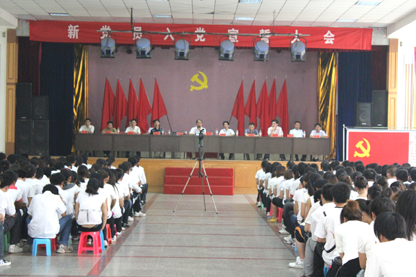2010年6月22日中午,我院在大学生活动中心隆重举行2010年上半年新党员入党宣誓大会。院党委副书记覃守云,副院长汪晓凌,组织部部长郑柏松,学工处处长、团委书记刘明涛,工会常务副主席、学工处副处长王莹华,团委副书记陈胜红,各系党总支副书记、团总支书记,1000余名学生新党员和积极分子参加了此次大会。