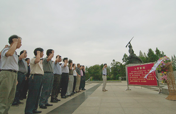 8月24日下午,全体与会人员参观了红安七里坪长胜街、红安革命传统教育学院,最后到鄂豫皖苏区暨黄麻起义纪念馆重温了入党誓词,党委书记张鹤桥、院长陈年友还带领大家向烈士纪念碑敬献了花蓝。