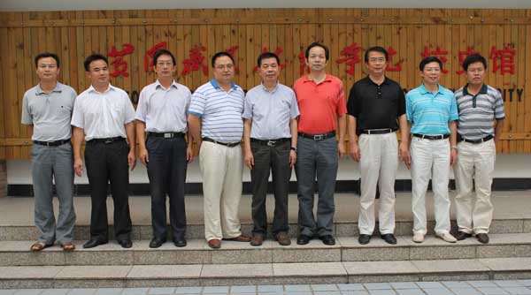 祝正龙(右四)一行在校史馆与院领导张鹤桥、王维华、熊发涯等合影