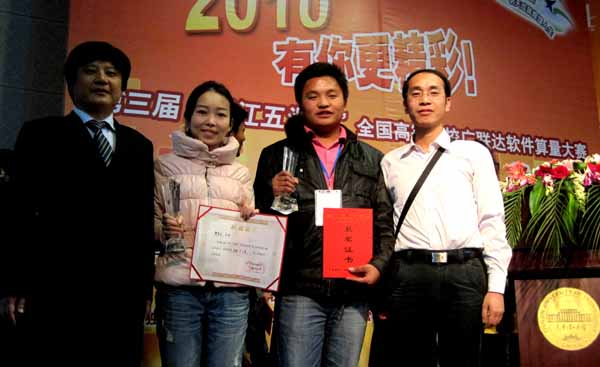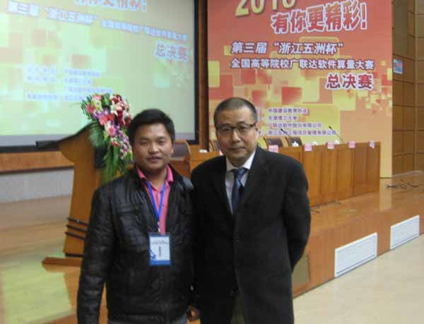 2010年10月26日,第三届“浙江五洲杯”全国高等院校算量大赛全国总决赛在天津理工大学隆重举行,经过一天的激烈比拼,我院土木建筑工程系选派的选手凭借扎实的基本功和精湛的技能力战群雄,战果卓著,2008级工程造价专业张琪同学荣获全国总决赛一等奖(获1500元奖金),樊恩亦同学荣获全国总决赛二等奖(获1000元奖金)。我院取得了全国高校算量大赛举办三届以来湖北地区高职院校中唯一的一等奖。在颁奖仪式上,全国工程造价教育专家委员会(建设部)主席、中国建筑经济学会工程造价专业委员会主席、亚太地区测量师协会PAQS教育组理事、天津理工大学管理学院院长、天津大学博士生导师尹贻林教授为我院选手张琪颁奖。