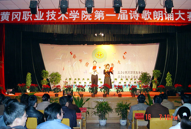为促进大学生全面发展,丰富同学们的第二课堂,由院教务处主办,生物工程系学生会团总支承办的“聆听经典·飞扬青春”为主题的学院首届诗歌朗诵大赛于11月16日晚在大学生活动中心隆重举行。
