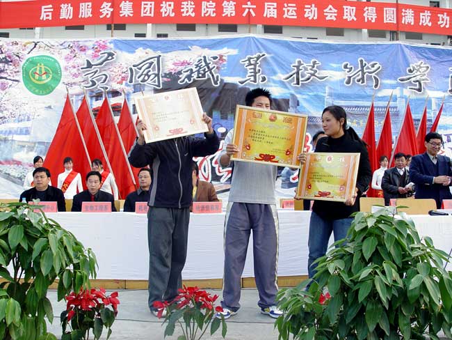 院长周德金同志致闭幕词,并向获奖单位颁发了奖状。闭幕式由副院长李家瑞同志主持。院领导及各系部处室负责人、全体裁判员、运动员出席了闭幕式。