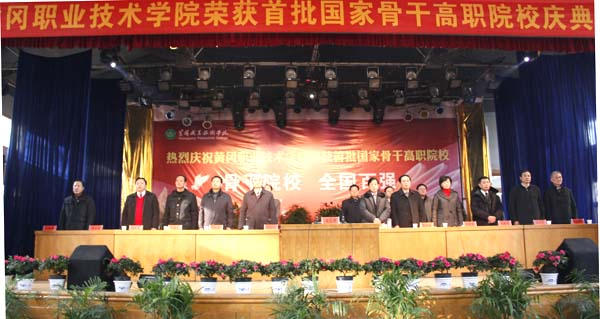 12月26日上午,我院荣获首批国家骨干高职院校建设单位庆典活动在院大学生活动中心隆重举行。参加庆典的市领导有:市委常委、常务副市长王静平,市委常委、宣传部长邓新华,市人大副主任张永斌,市政协副主席李儒志等;嘉宾有黄冈师范学院党委书记程水源,黄冈开发区管委会主任黄永文,鄂东职院党委书记、院长饶水林,黄冈科技职院、市直各单位的领导,各县市区分管教育的副县(市、区)长、教育局局长及分管教学的副局长、招办主任、高中(中专)校长,黄冈职院校企合作单位代表等。学院离退休老领导应邀参加了会议。副市长梅香雪主持大会。