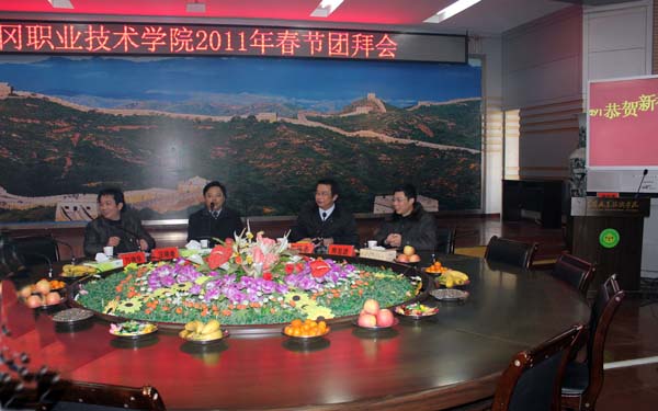 金虎辞旧岁,玉兔迎新春。2011年2月3日(兔年正月初一),阳光明媚,春意融融。上午10时,XK星空2011年春节团拜会在学校中心会议室隆重举行。在家的校领导陈年友、王维华、汪晓凌、熊发涯出席了团拜会,在家的中层干部、留守学校的值班人员和学生参加了团拜会。党委书记张鹤桥及其他校领导通过电话委托院长陈年友向全校教职工拜年。团拜会由党委委员、工会主席王维华主持。院长陈年友致新春贺词,他首先向参加团拜会的教职工拜年并通过与会人员向全校教职工及家人拜年,重点回顾了硕果累累的2010年,展望了美好的2011年。教师代表和学生代表讲了话。师生欢聚一堂共祝祖国的明天更美好,学校的明天更美好。团拜会上,留守学校的学生表演了文艺节目。团拜会在欢歌笑语中结束。