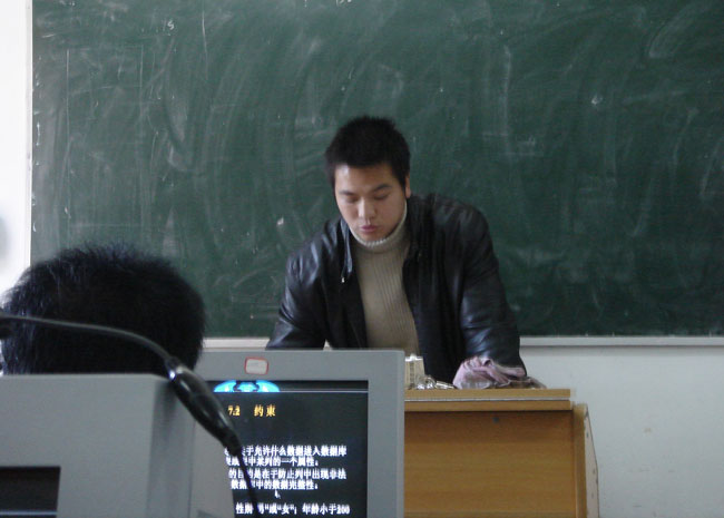 2005年12月8日星期四下午,在计科系实训中心十机房进行了我院本学期的最后一次示范课。本次示范课由计科系网络教研室年青教师朱伟主讲,内容为网络数据库中约束的应用。