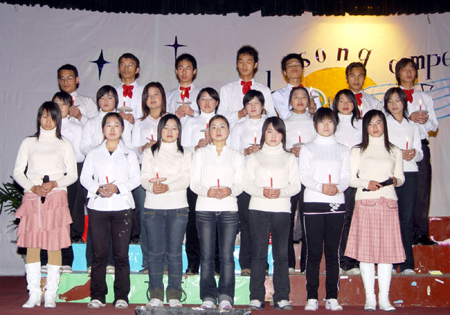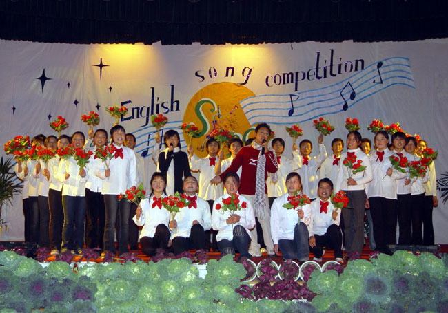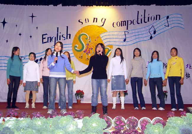 本次大赛就是在院英语协会固定的四项活动之一“英文歌曲周周唱”的前期操作下,顺势出炉的。它要求每个系形成一个代表队,节目形式为两个独唱和一个合唱。在各系分别认真组织初赛后,然后进入学院决赛。本次大赛进行得非常顺利,高潮迭起。最终,袁小明同学以一首《We will rock you》赢得了个人组第一名,而机电系代表队的大合唱捧走了团体一等奖。三名外籍教师纷纷上台致辞,高度评价了学生的歌喉、表演能力和组织能力。他们纷纷表述:我们度过了一个非常有意义,非常美妙的夜晚。