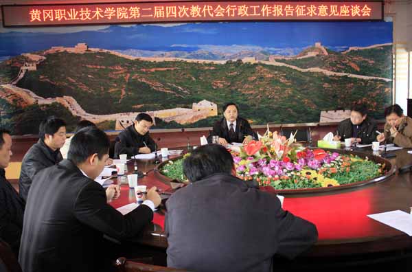 会上,校长陈年友介绍了行政报告的总体思路:一是学校“十一五”期间的工作回顾;二是学校“十二五”工作构想;三是学校2011年工作设想,并阐述了征求意见会的重要意义。与会代表们为学校跨越发展,建言献策,认真修改报告,提出了很多很好的建议和意见。