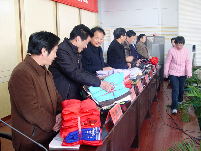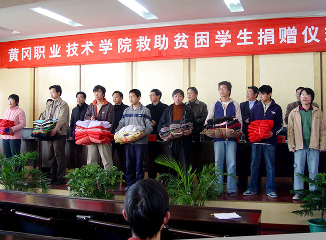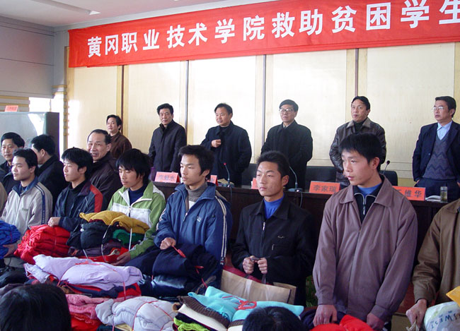 2005年12月8日,我院学术报告厅暧意融融,“校园爱心互助行动,千万别冻着学生”---我院救助贫困大学生捐助仪式在这里举行。院领导涂普生、周德金、李家瑞、李耀水、王维华、汪晓凌、夏启中以及各系部处室等分别向贫困大学生捐助了衣物、被褥等“爱心物品”。这些“爱心物品”体现了学院全体教职工及同学对经济困难学生的关心。