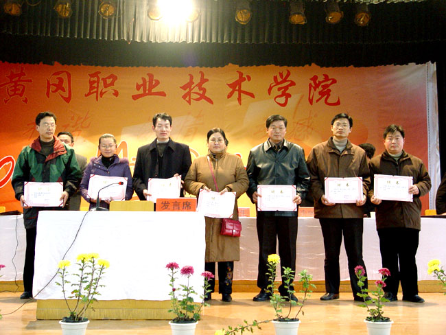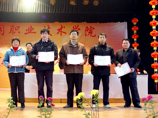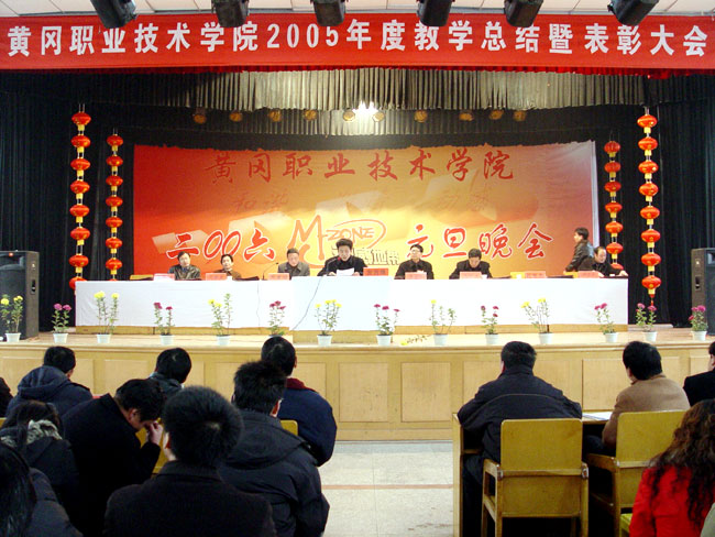 2006年1月12日下午,在院大学生活动中心,我院隆重召开2005年度教学工作总结暨表彰大会。院领导涂普生、李家瑞、李耀水、汪晓凌、段院生、夏启中,教务处处长李雪早在主席台就座,会议由李家瑞副院长主持,院机关、各系部负责人,全体专任教师、双肩挑教师、外聘教师400余人出席了大会。