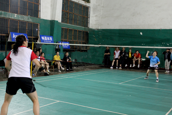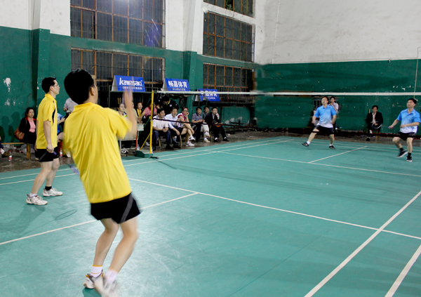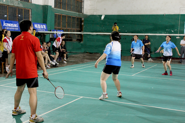 医药卫生学院对公共课部的决赛吸引了很多观众。医药卫生学院拥有羽毛球水平黄冈一流的男单,整体实力强;公共课部体育老师多,身体素质好。强强交手,艺高者胜。第一场混双、第二场男单,医药卫生学院都优势取胜。第三场,公共课部派出了实力选手童丽珍老师,她不时前场上网搓球,不时后场起跳扣杀,精湛的球技赢得了阵阵热烈的喝彩,2:0完胜,公共课部扳回一场。在第四场男双比赛中,公共课部上演了主任、副主任的配合,但终因对手实力强大而失手。医药卫生学院胜。