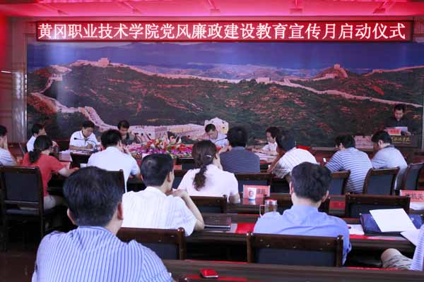 2011年5月30日,在学校办公楼四楼中心会议室,学校隆重举行2011年党风廉政建设教育宣传月启动仪式。学校领导张鹤桥、王维华、汪晓凌、段院生、万俊华、郑柏松出席了会议,校长助理刘东山、胡燕以及全体中层干部参加了会议。会议由党委副书记、纪委书记王维华主持。