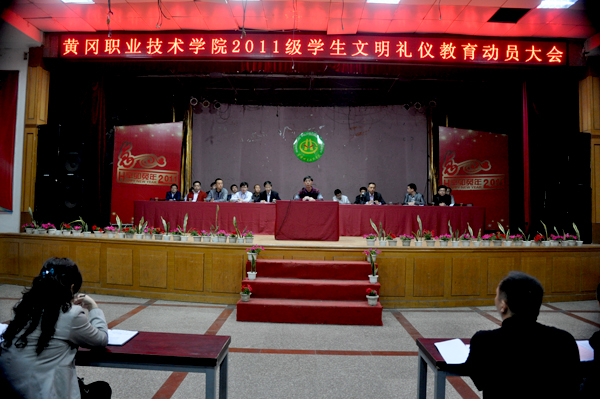2011年10月13日晚6:20,学生工作处在大学生活动中心召开全校2011级学生文明礼仪教育动员大会。学校党委委员郑柏松同志出席了会议,全体学工战线的工作人员以及900多名2011级学生代表参加了大会。会议由学工处处长叶华光同志主持。