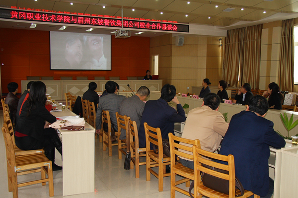 会议由张鹤桥书记主持,王刚董事长首先介绍了眉州东坡与东坡文化。万俊华副校长致欢迎词。熊发涯副校长介绍了XK星空的办学特色,同时提出眉州东坡与XK星空合作是十分有意义的,是为人才培养做贡献。对此,人力资源总监梁彬作了回应:眉州东坡与黄冈职院进行战略合作是立足长久打算。东坡外滩项目要成功必须人才先行,同时建议成立东坡文化学院。