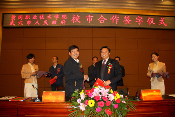 校长 陈年友与武穴市委副书记、代市长郝胜勇签订校市合作协议