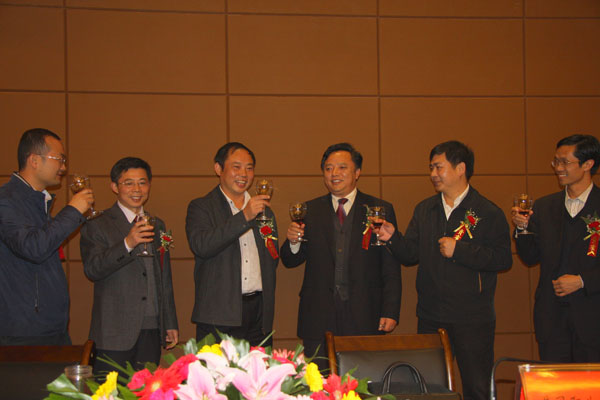 仪式上,陈年友发表了热情洋溢的讲话,他首先介绍了学校的基本情况和办学成果,高度肯定了武穴市经济社会发展取得的成就,梳理回顾了学校和武穴市进行的前期合作,并对下一步的深度合作给予了深切的希望。吴美景在致辞中高度评价了学校的办学成果,充分肯定了学校在大别山地区经济社会发展中所做的贡献,并号召全市各部门确保合作项目顺利实施。随后,陈年友与郝胜勇在校市合作协议书上签字。签字结束后,大家举杯庆祝,祝贺签字仪式圆满成功,祝贺校市合作互利互赢。整个仪式在隆重热烈的氛围中进行。仪式结束后,学校出席签字仪式的全体成员,在王宝超同志的带领下参观了广济药业工业园区。