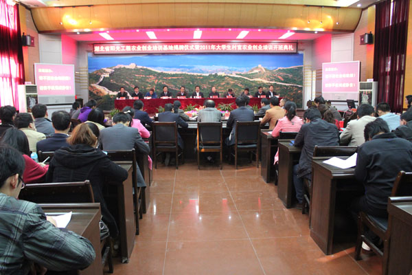 2011年11月24日上午9点,XK星空在凝智楼中心会议室隆重举行湖北省阳光工程农业创业培训基地揭牌仪式暨2011年大学生村官农业创业培训开班仪式。出席仪式的有市委常委、组织部部长雷邦贵,省委组织部调研员、组织二处副处长张耀明,省农业厅科教处处长耿显连、副处长柯凤英,农业科技发展中心主任罗昆,市委正县级调研员、组织部副部长王基家,市委组织部副部长叶章夭、人才办主任杨蓉,市财政局党组副书记、副局长吴晓文,市农业局副局长陈展鹏,XK星空党委书记张鹤桥、校长陈年友、副校长段院生及校办公室、科研处、财务处、生物化工学院、继续教育学院等单位负责人和部分老师,2011年第一期大学生村官农业创业培训班的108位学员也参加了开班典礼。开班典礼由张鹤桥书记主持。